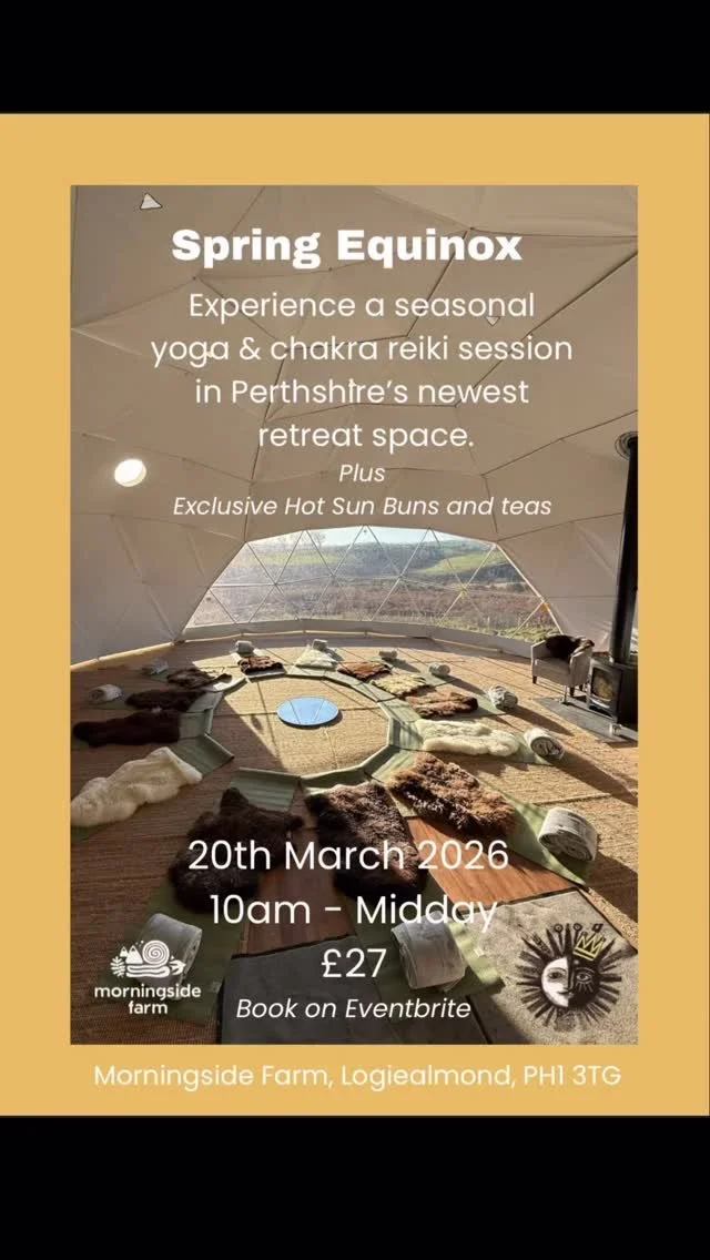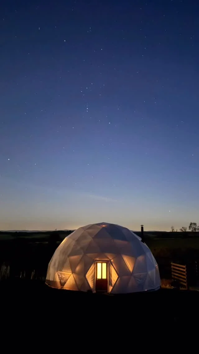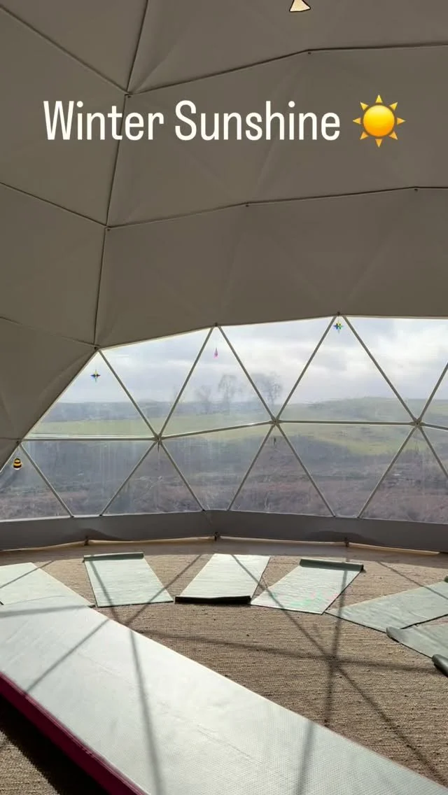 Provided in the dome is a set of 20 yoga mats, British sheepskins, handmade bolsters & snuggly huge blankets. Along with fairy lights, 4 lamps and a portable speaker. There are also glasses & water jugs.